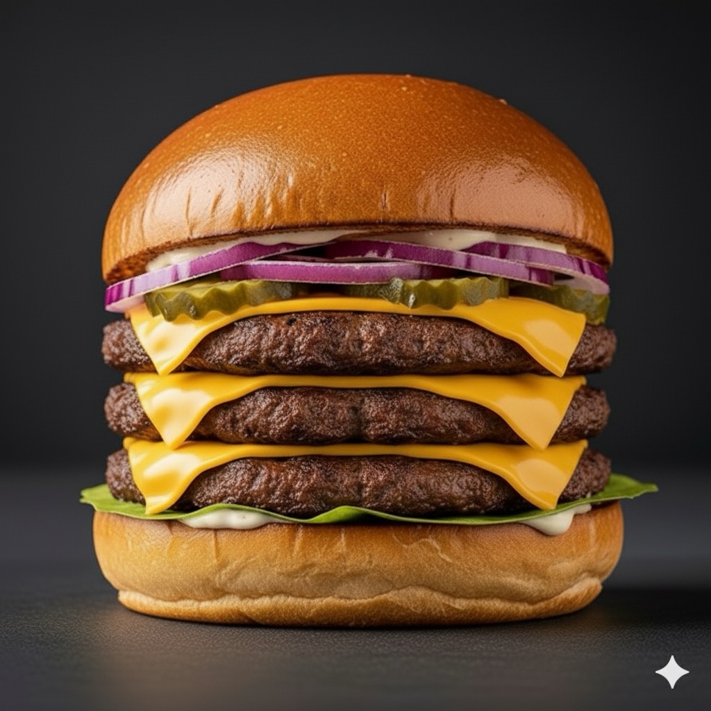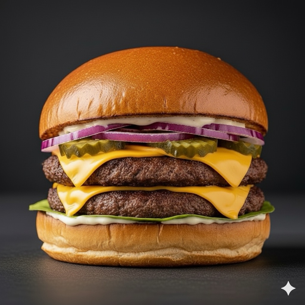 Pão brioche, 2 hambúrgueres de 100g com cheddar duplo, cebola roxa, maionese especial e picles artesanal.