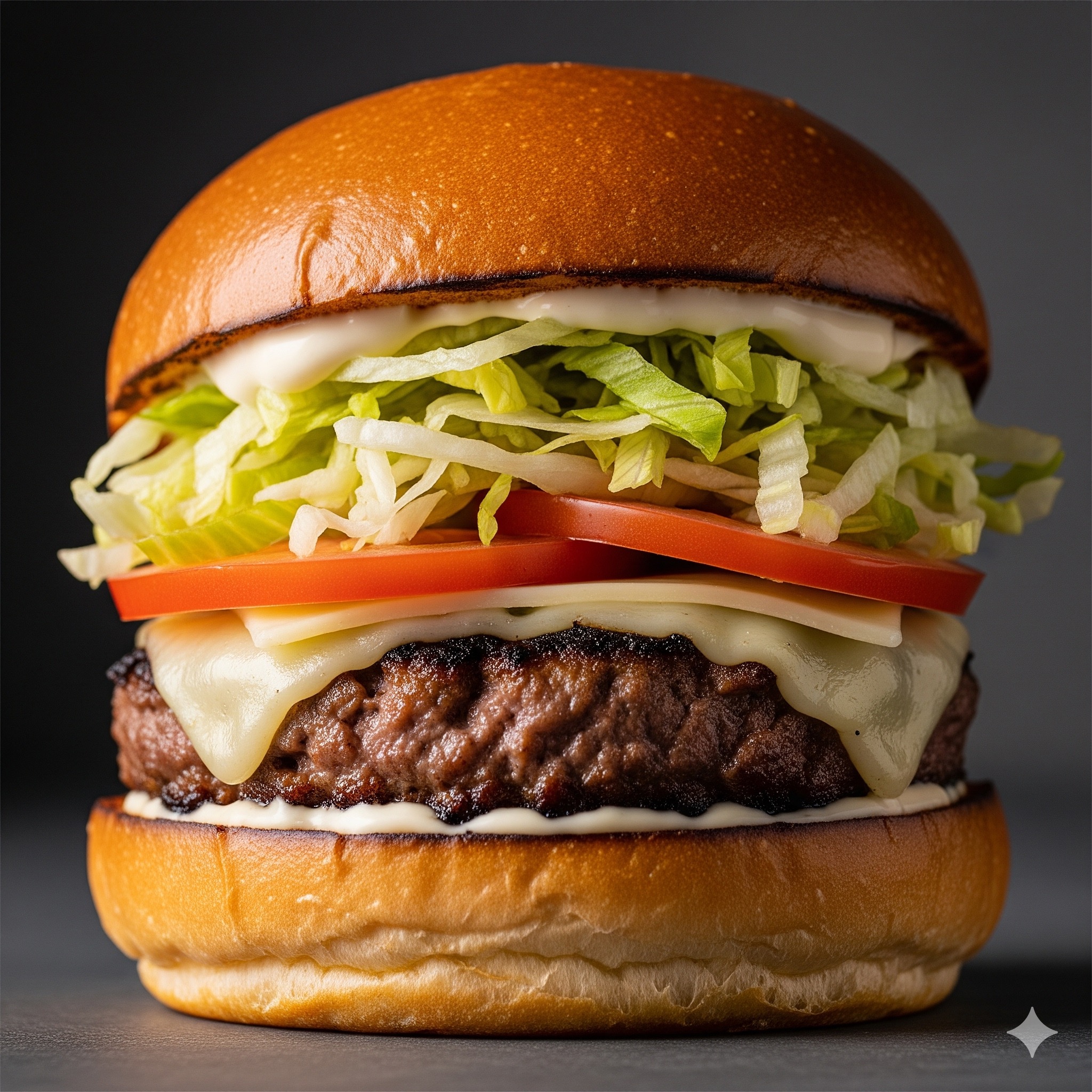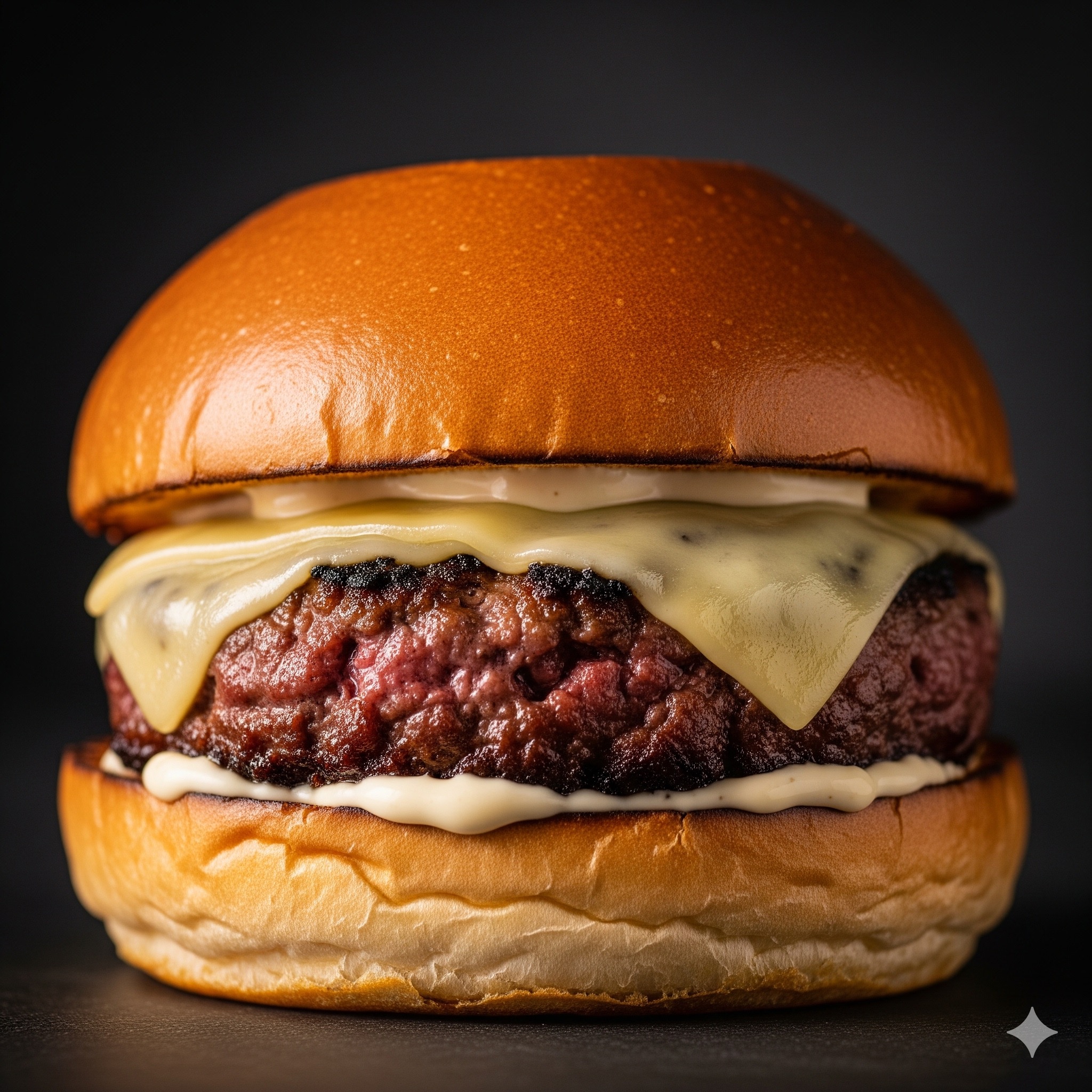 Pão brioche, hambúrguer artesanal de 150g, queijo prato e maionese da casa.