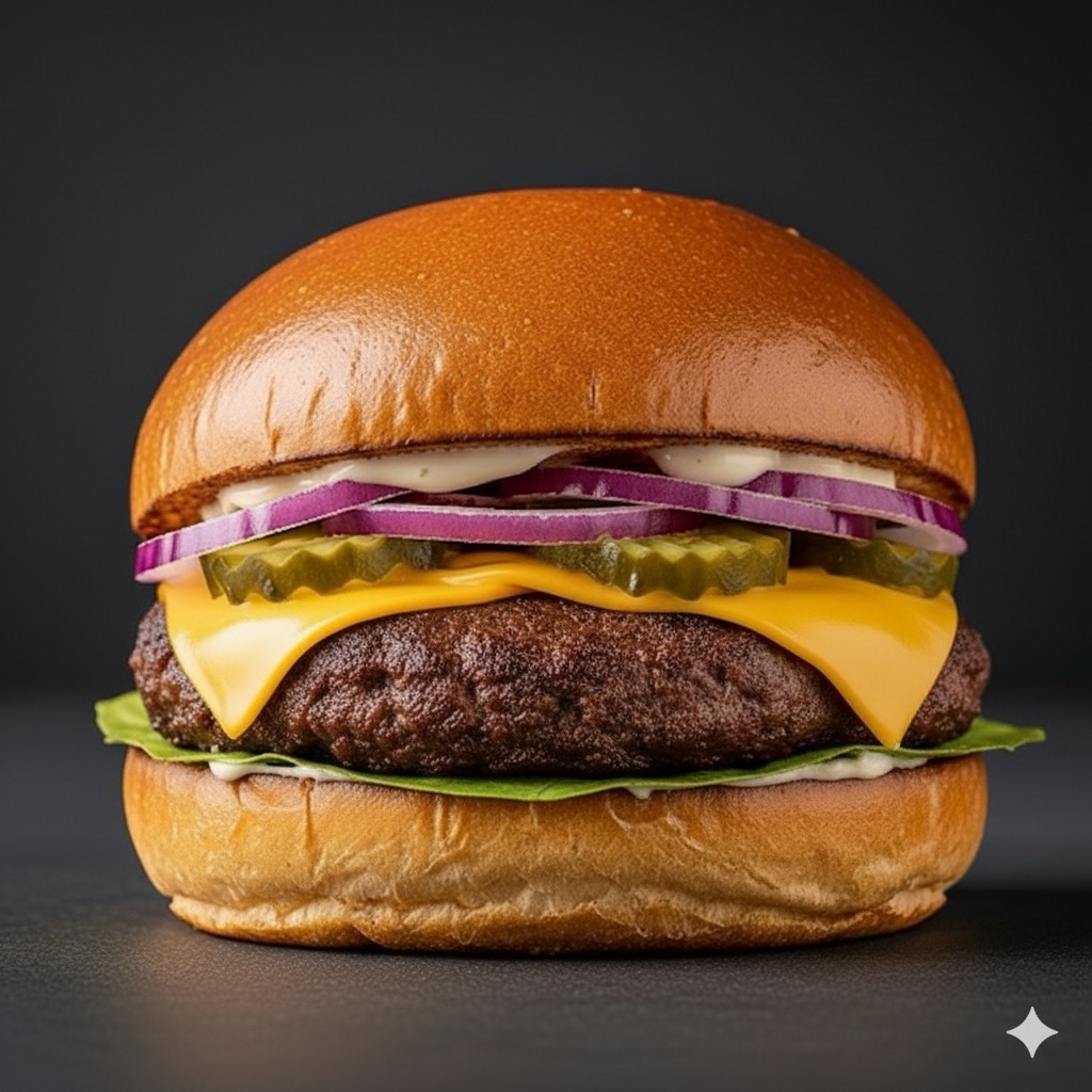 Pão brioche, hambúrguer de 100g com cheddar duplo, cebola roxa, maionese especial e picles artesanal.