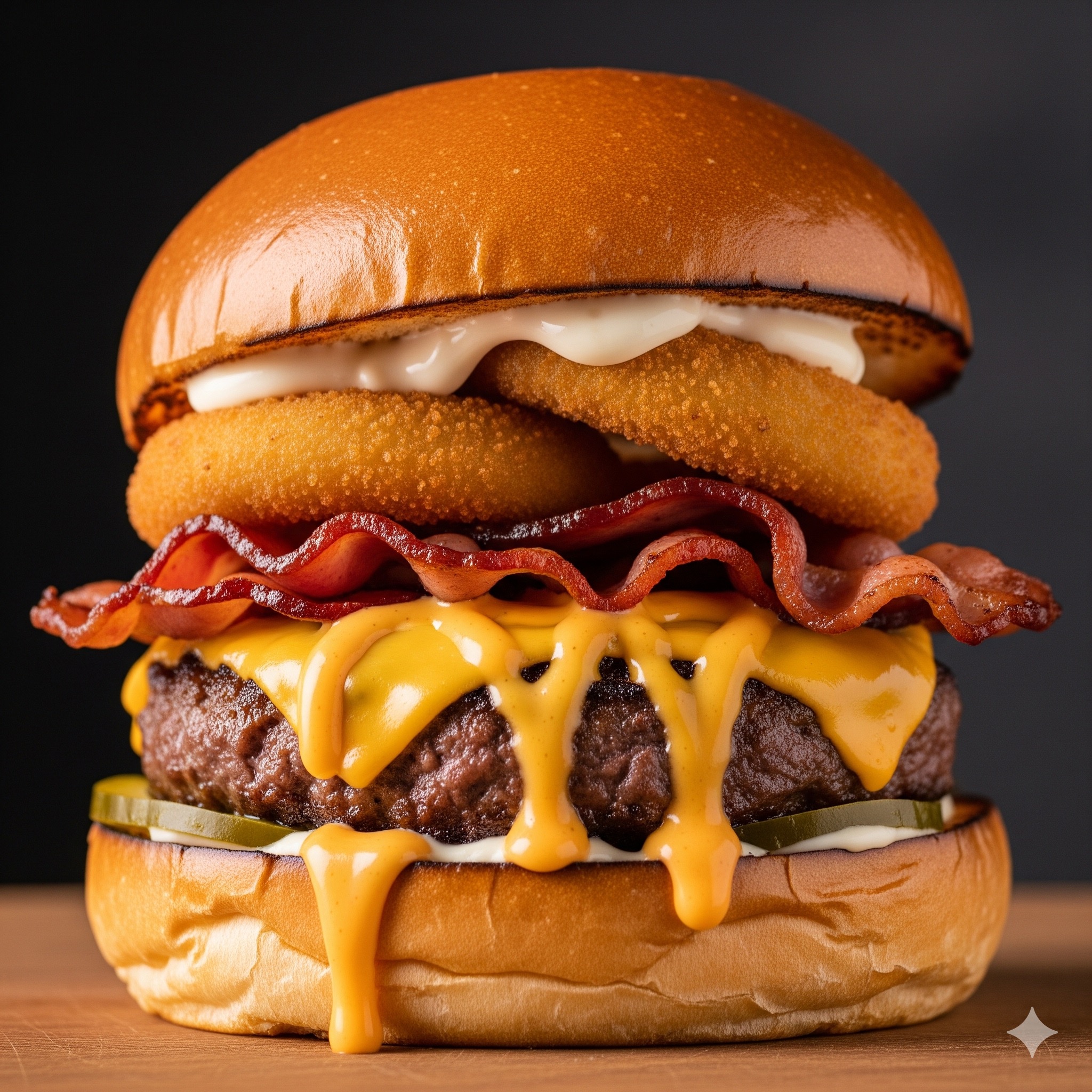 Pão brioche, hambúrguer artesanal de 150g, molho cheddar, bacon crocante, anéis de cebola empanados e maionese especial.